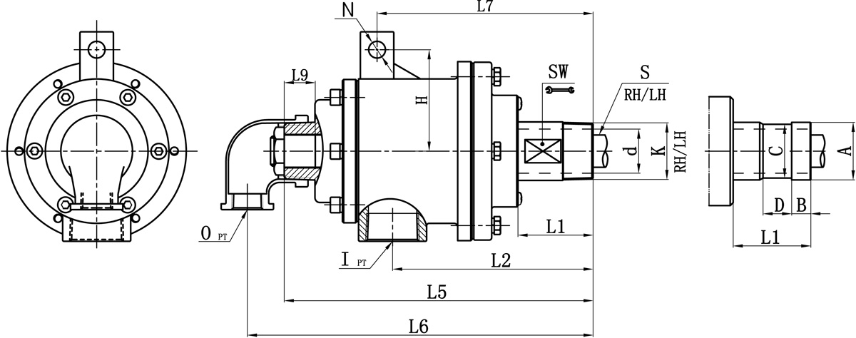 Model K I O S d L1 L2 L5 L6 L7 L9 N H SW 法蘭式外管尺寸對照表
