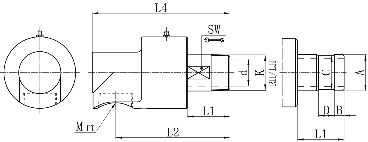 Model K M d L1 L2 L4 SW 法蘭式外管尺寸對(duì)照表
