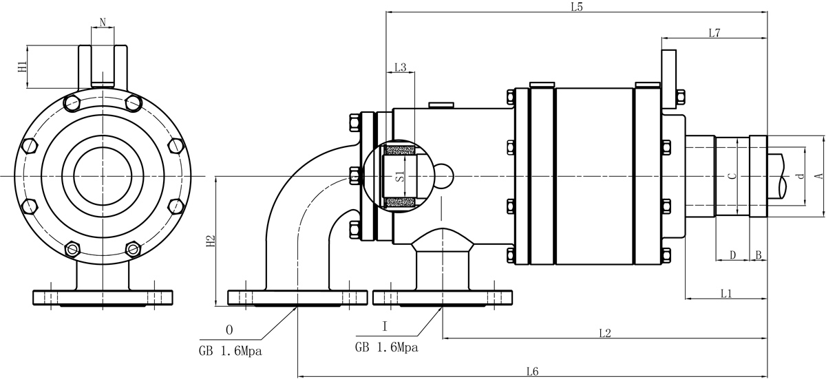 | Model | I | O | S1 | d | L1 | L2 | L3 | L5 | L6 | L7 | N | H1 | H2 | 法蘭式外管尺寸對(duì)照表 | |||