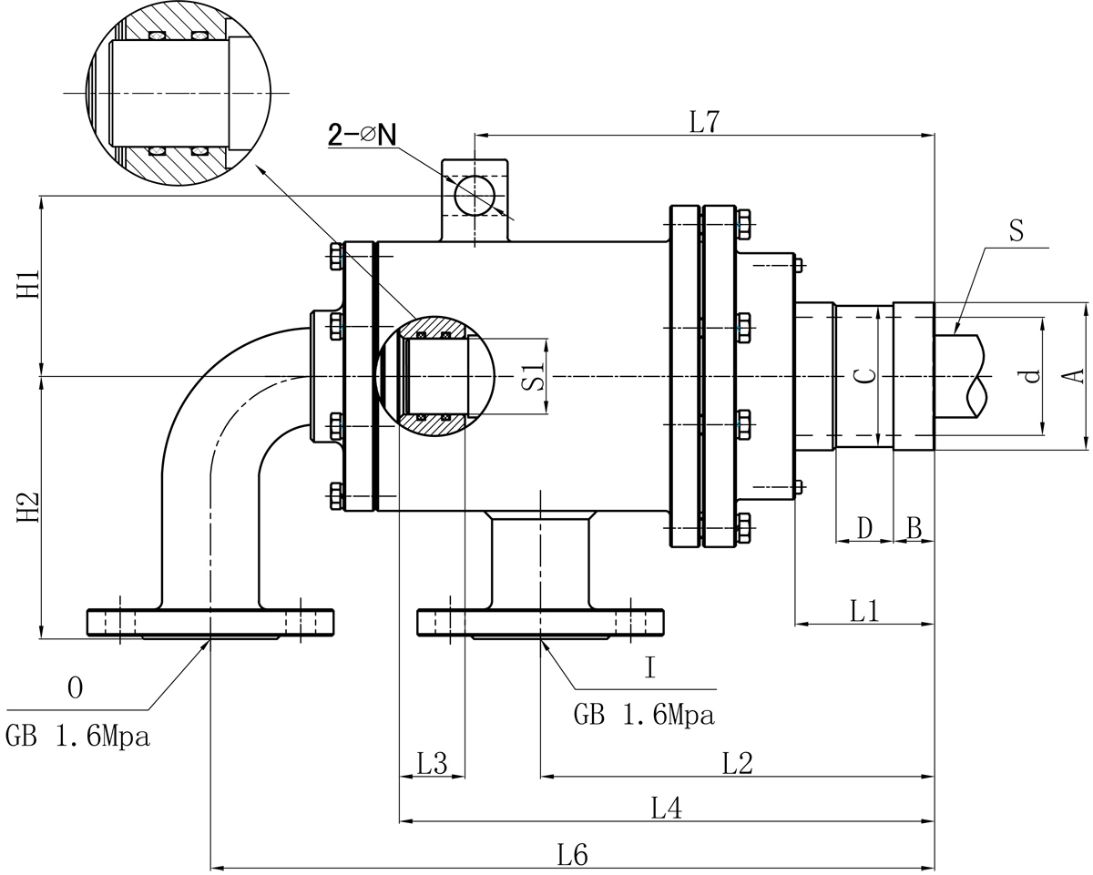 | Model | I | O | S | d | L1 | L2 | L3 | L4 | L6 | L7 | N | H1 | H2 | 法蘭式外管尺寸對照表 | |||