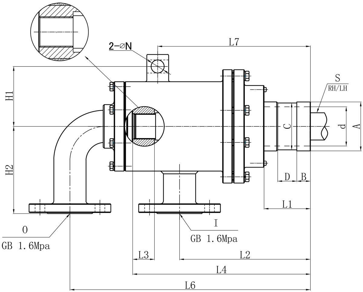 | Model | I | O | S1 | d | L1 | L2 | L3 | L4 | L6 | L7 | N | H1 | H2 | 法蘭式外管尺寸對照表 | |||