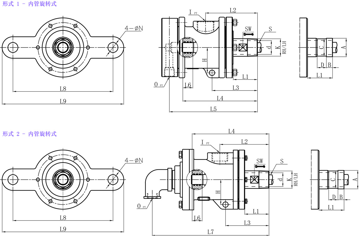 | Model | K | I | O | S1 | d | L1 | L2 | L3 | L4 | L5 | L6 | L7 | L8 | L9 | N | SW | H | 法蘭式外管尺寸對(duì)照表 | |||