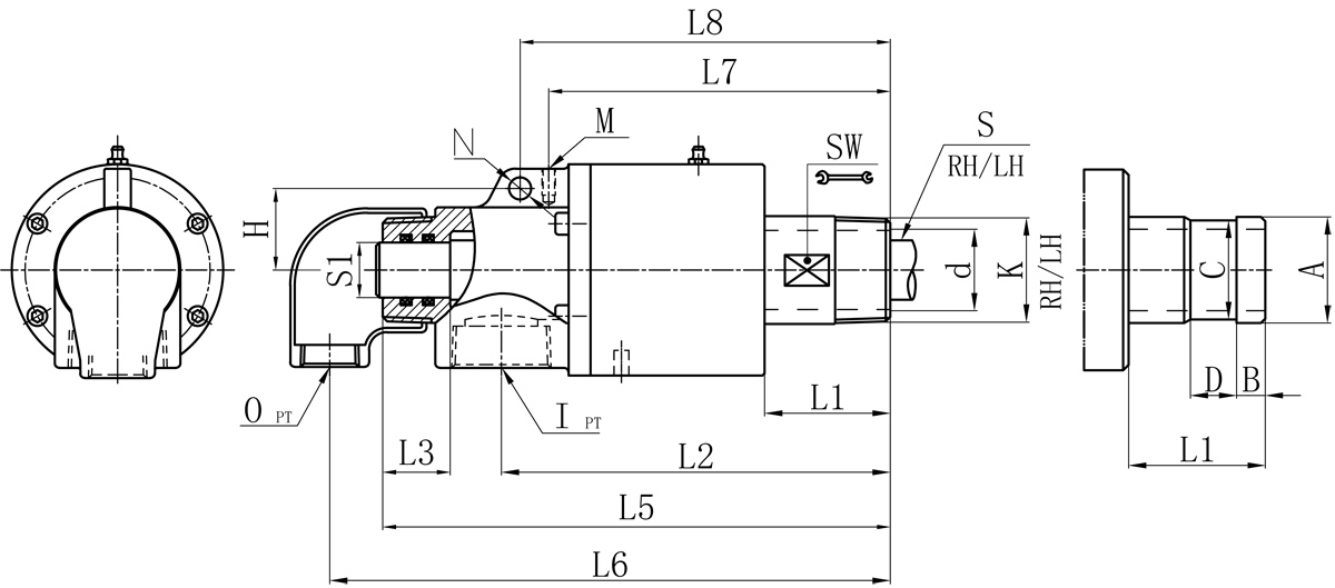 | Model | K | I | O | S1 | d | L1 | L2 | L3 | L5 | L6 | L7 | L8 | M | N | H | SW | 法蘭式外管尺寸對(duì)照表 | |||