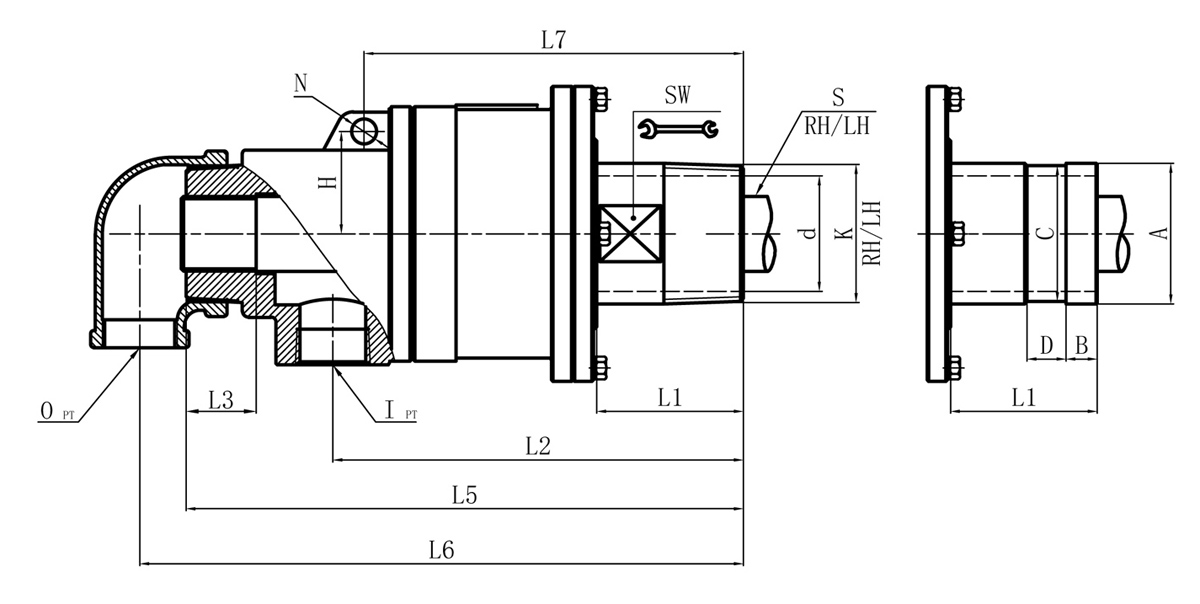 | Model | K | M | I | O | S | S1 | D1 | L1 | L2 | L3 | L5 | L6 | L7 | L8 | N | SW | H | 法蘭式外管尺寸對(duì)照表 | |||